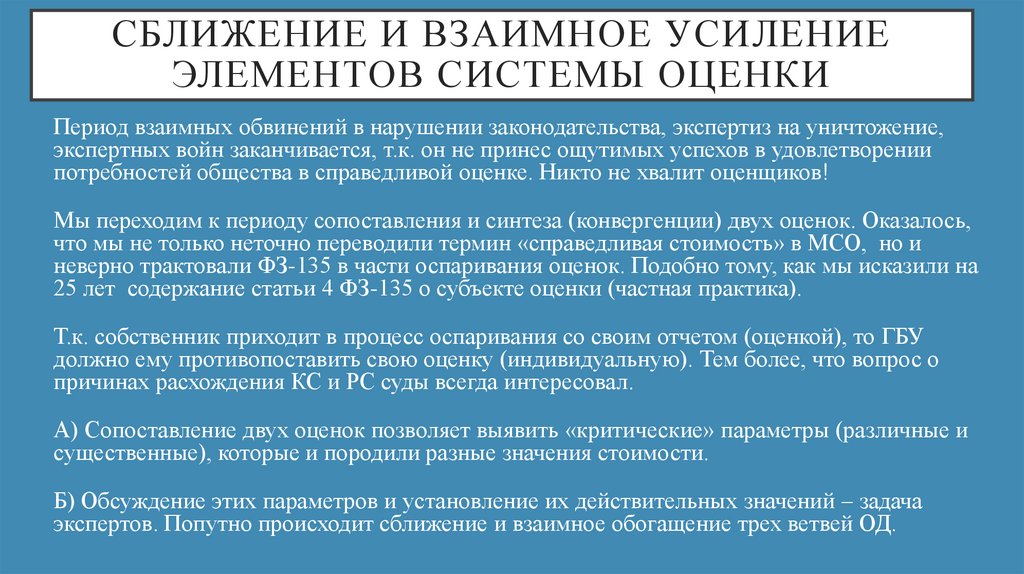 СБЛИЖЕНИЕ И ВЗАИМНОЕ УСИЛЕНИЕЭЛЕМЕНТОВ СИСТЕМЫ ОЦЕНКИ