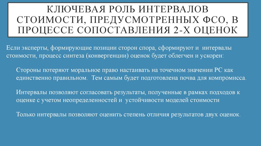 стоимости, процесс синтеза (конвергенции) оценок будет облегчен и ускорен: