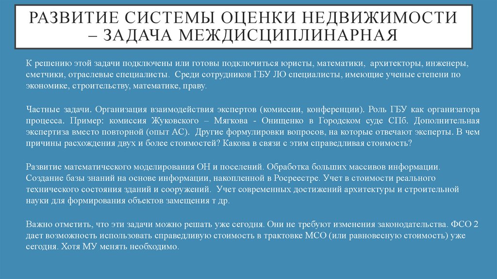 РАЗВИТИЕ СИСТЕМЫ ОЦЕНКИ НЕДВИЖИМОСТИ– ЗАДАЧА МЕЖДИСЦИПЛИНАРНАЯ