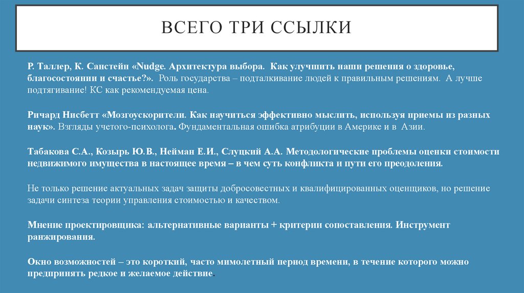 ВСЕГО ТРИ ССЫЛКИР. Таллер, К. Санстейн «Nudge. Архитектура выбора. Как улучшить наши решения о здоровье,