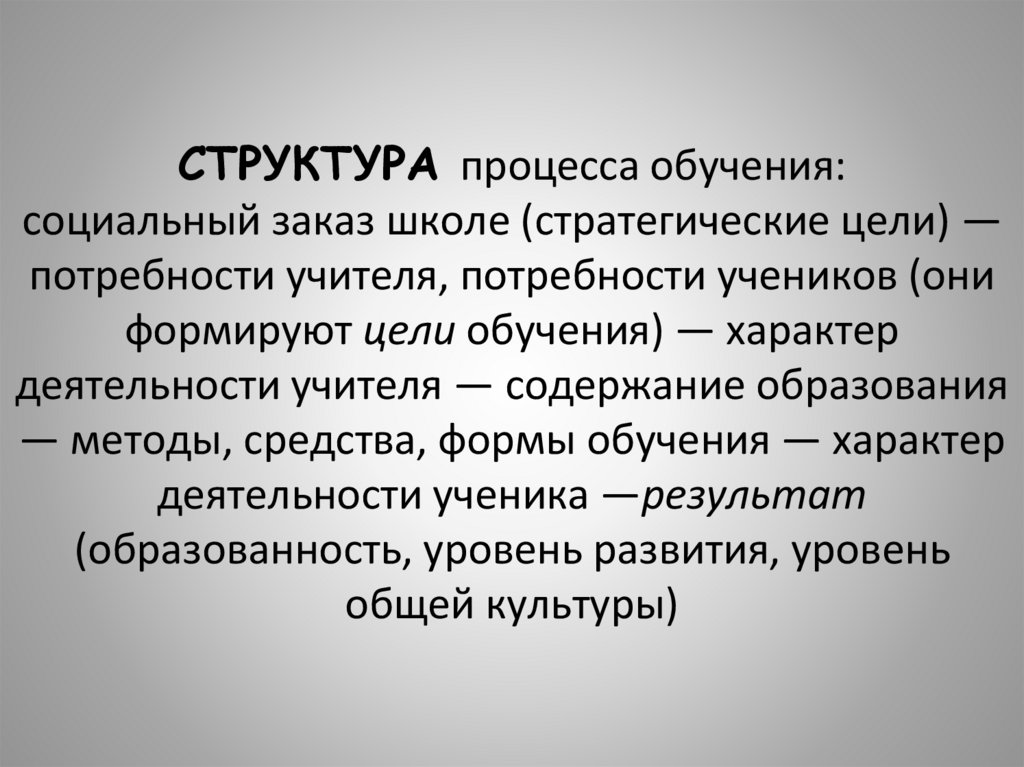 СТРУКТУРА процесса обучения:социальный заказ школе (стратегические цели) —