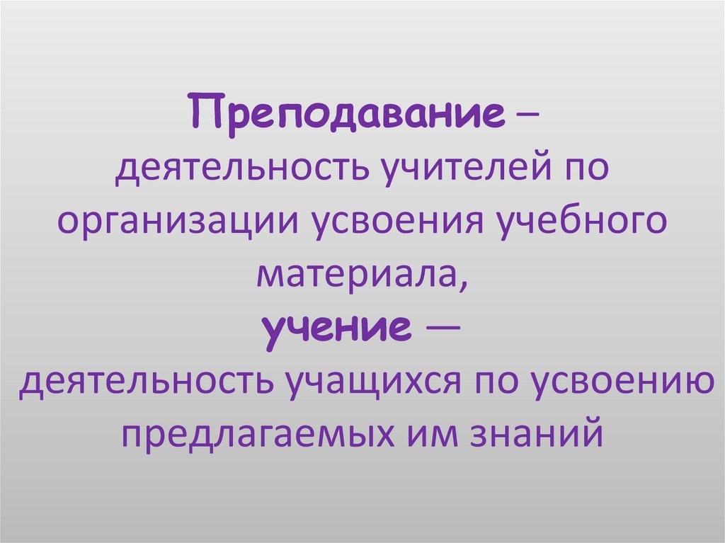 Преподавание –деятельность учителей по