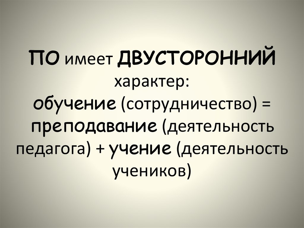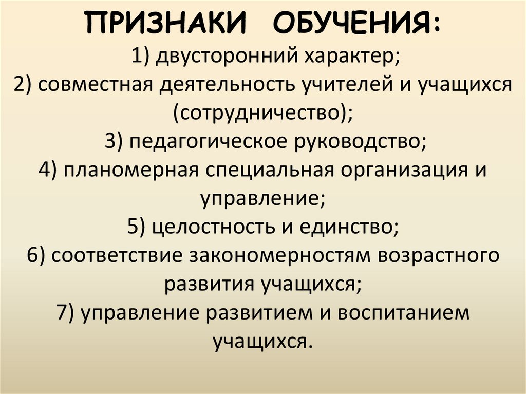 ПРИЗНАКИ ОБУЧЕНИЯ:1) двусторонний характер;