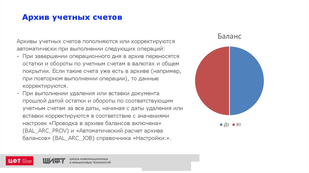 Архив учетных счетовАрхивы учетных счетов пополняются или корректируются