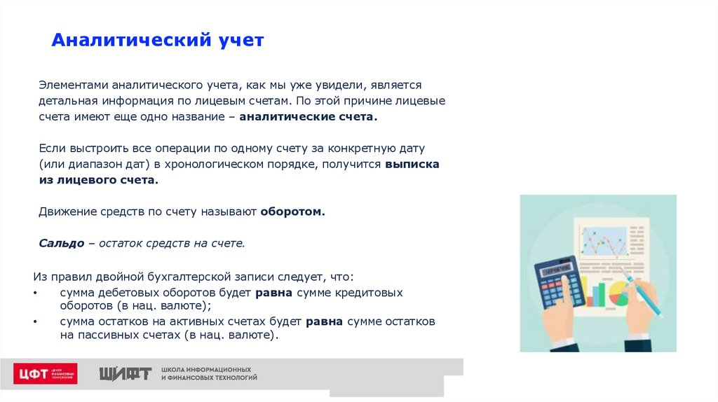 Аналитический учетЭлементами аналитического учета, как мы уже увидели, является