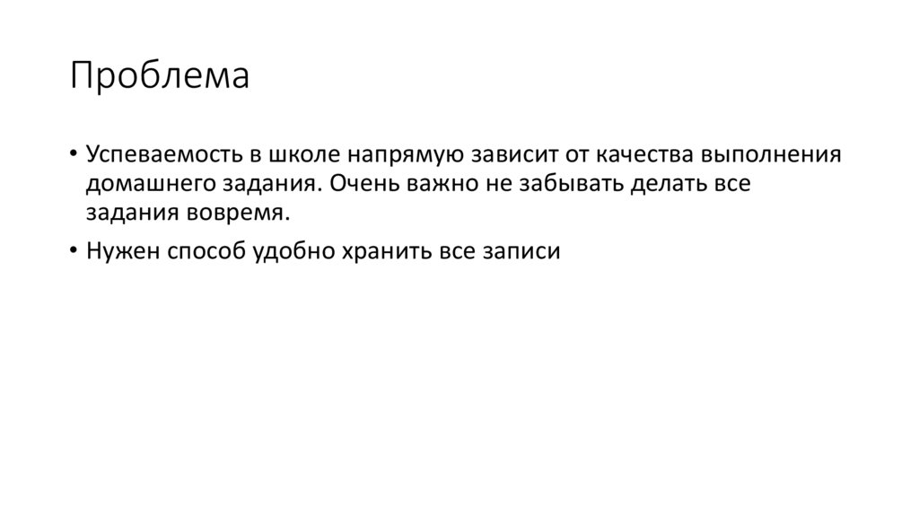Проблема• Успеваемость в школе напрямую зависит от качества выполнения