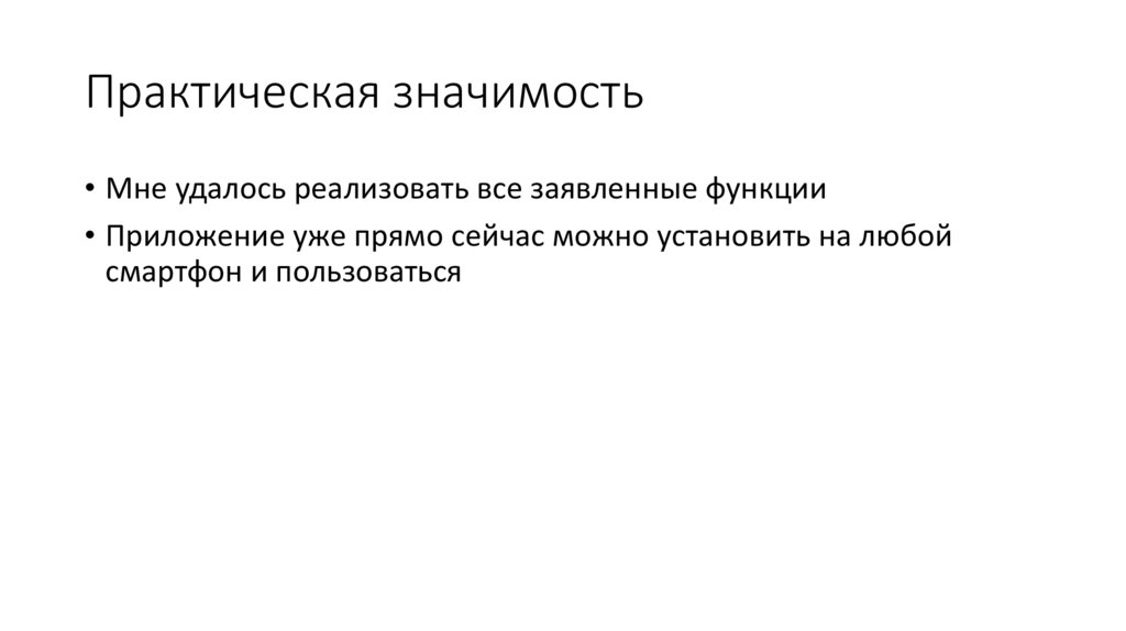 Практическая значимость• Мне удалось реализовать все заявленные функции