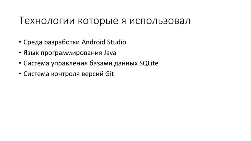 Технологии которые я использовал• Среда разработки Android Studio