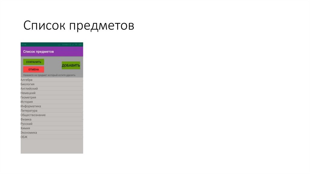 • Возможность редактирования списка предметов