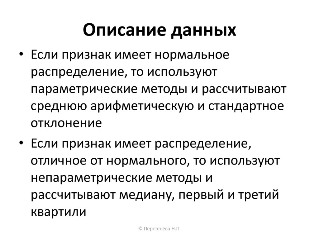 Описание данных• Если признак имеет нормальное
