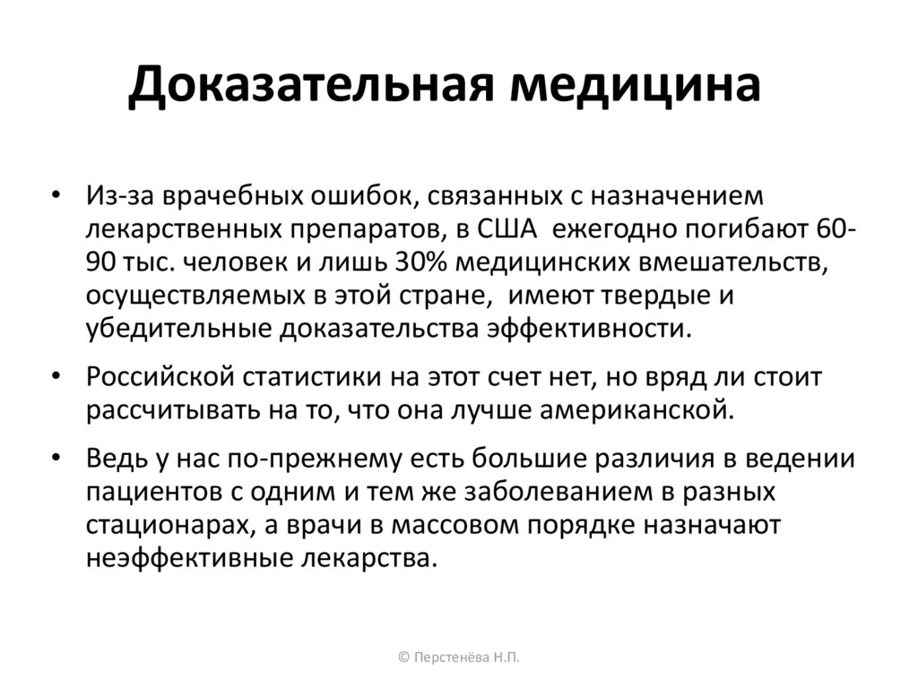 Доказательная медицина• Из-за врачебных ошибок, связанных с назначением