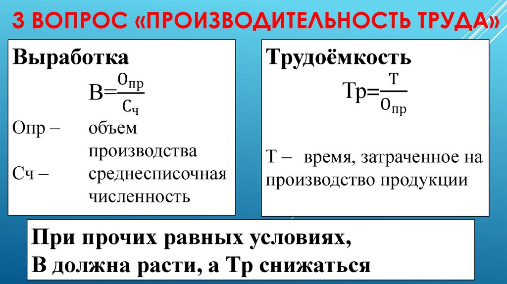 3 ВОПРОС «ПРОИЗВОДИТЕЛЬНОСТЬ ТРУДА»Выработка