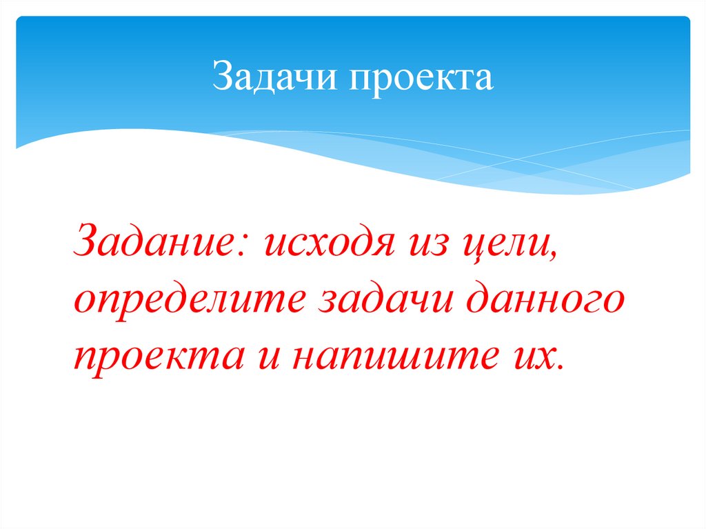 Задачи проектаЗадание: исходя из цели,