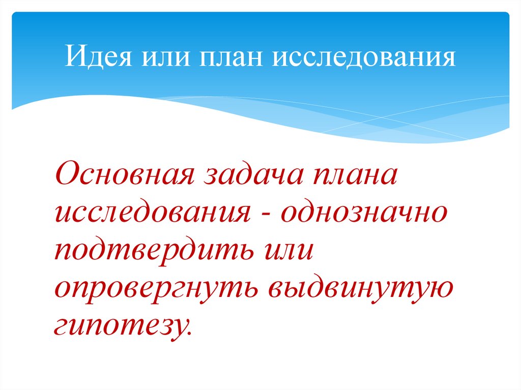 Идея или план исследованияОсновная задача плана