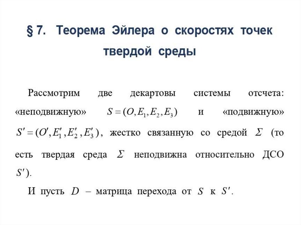 Свободное движение твердого тела. (Лекция 5, Кафедра теоретической механики)