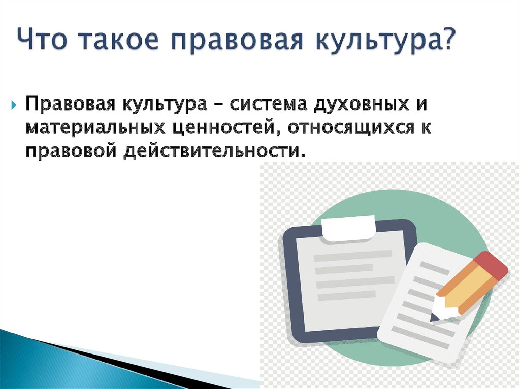 Правовая культура – система духовных иматериальных ценностей, относящихся к
