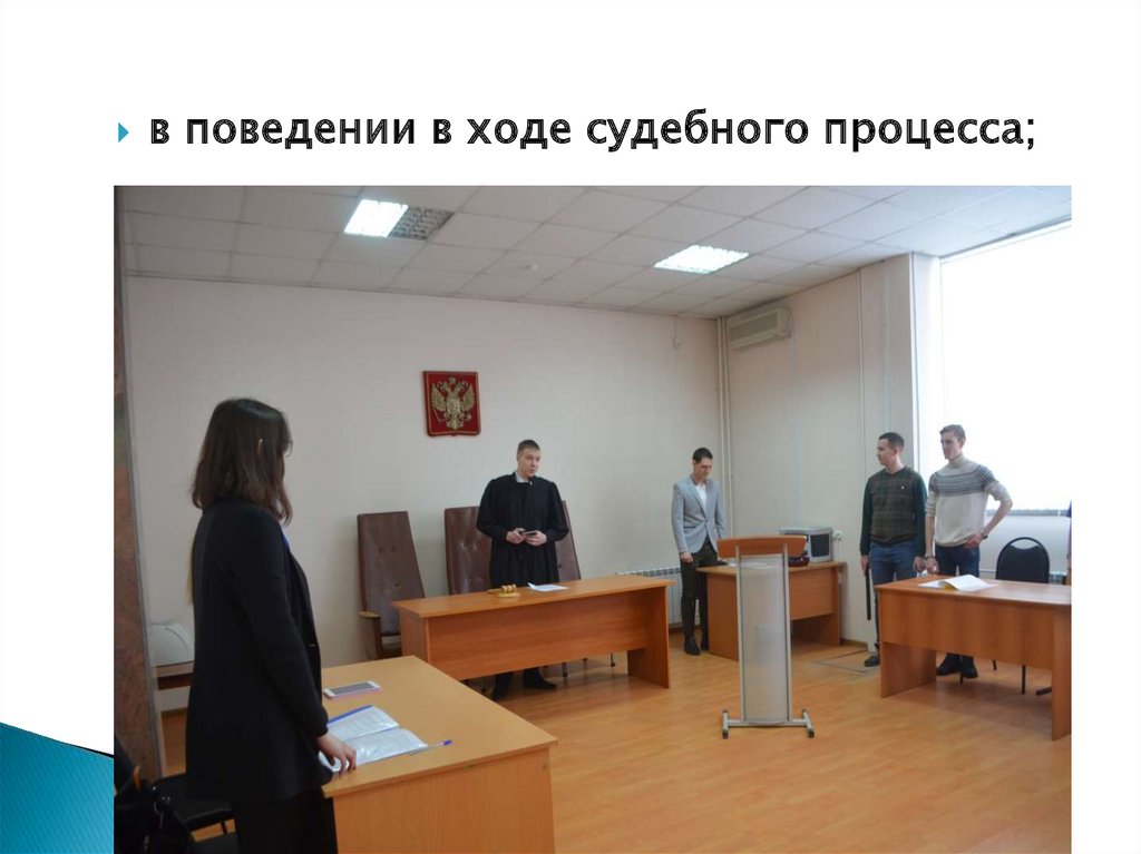 в поведении в ходе судебного процесса;14.