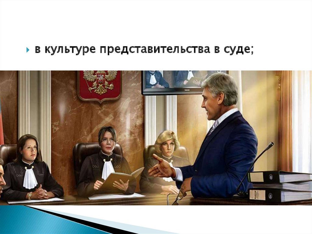 в культуре представительства в суде;15.