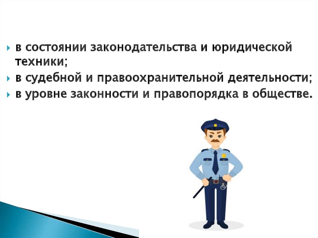 в уровне законности и правопорядка в обществе.