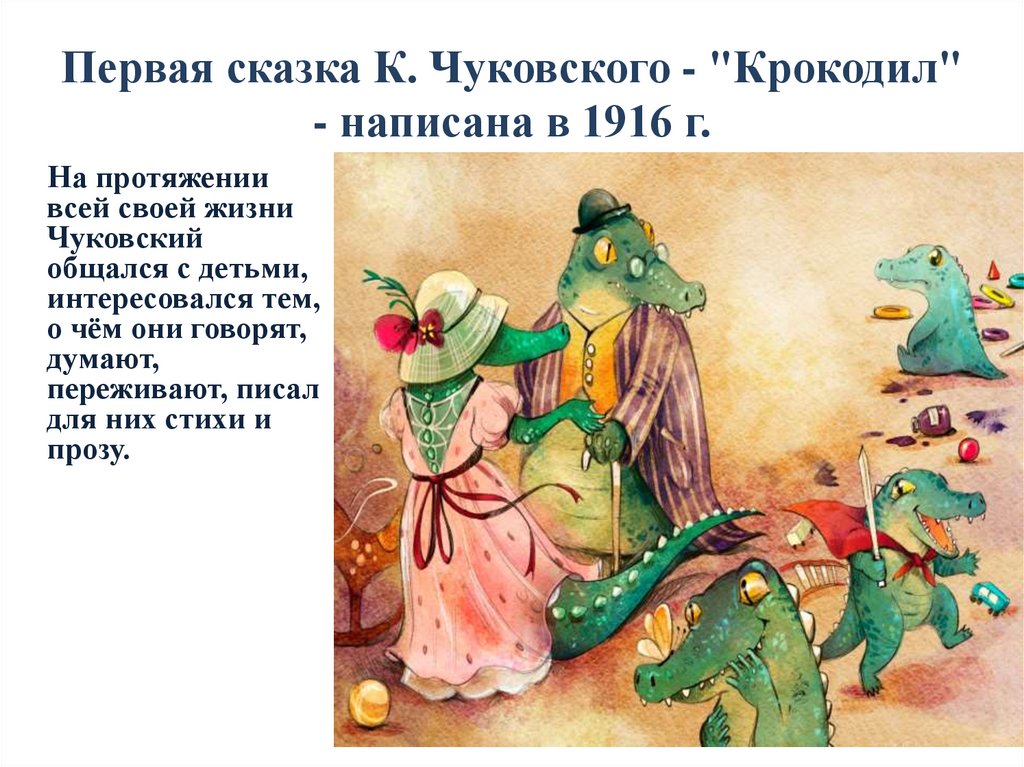 Первая сказка К. Чуковского - "Крокодил"- написана в 1916 г.