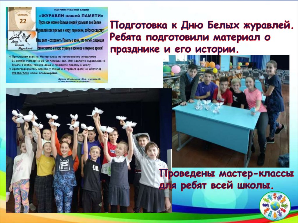 Подготовка к Дню Белых журавлей.Ребята подготовили материал о празднике,