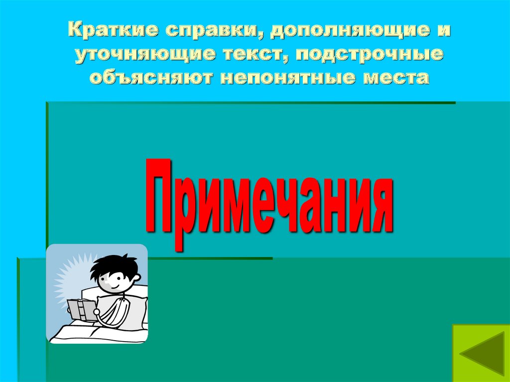 Краткие справки, дополняющие иуточняющие текст, подстрочные