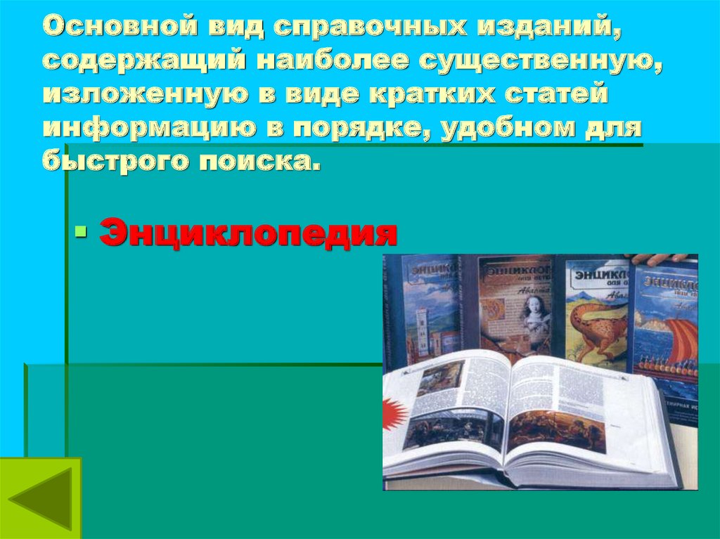 Основной вид справочных изданий,содержащий наиболее существенную,