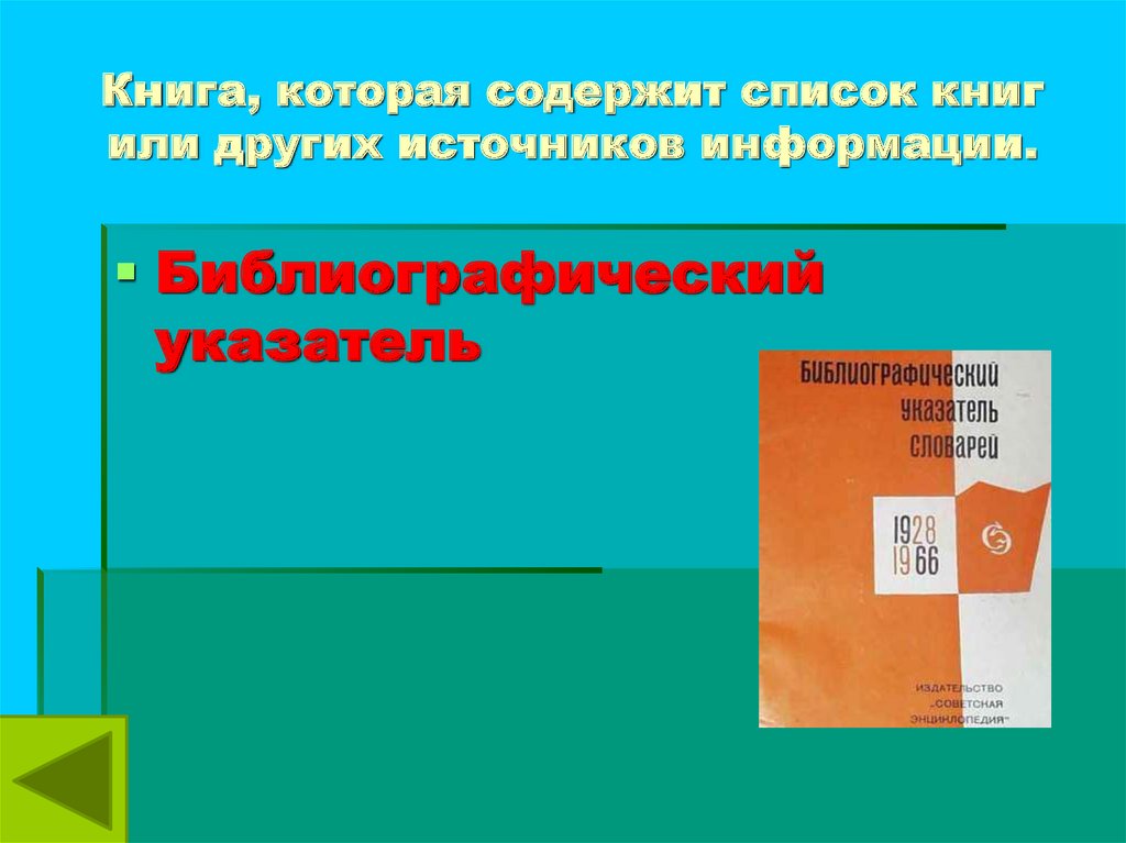 Книга, которая содержит список книгили других источников информации.