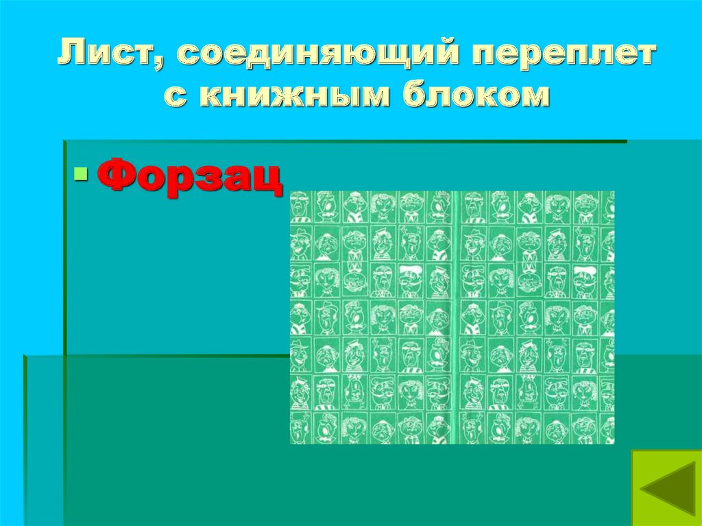 Лист, соединяющий переплетс книжным блоком