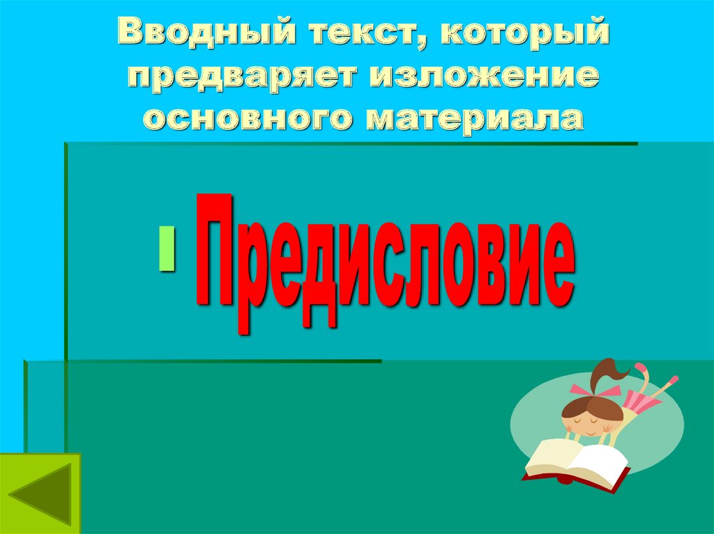 Вводный текст, которыйпредваряет изложение