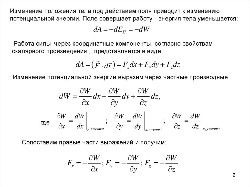 Изменение потенциальной энергии выразим через частные производные