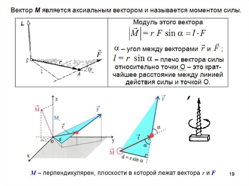 FМ – перпендикулярен, плоскости в которой лежат вектора r и F
