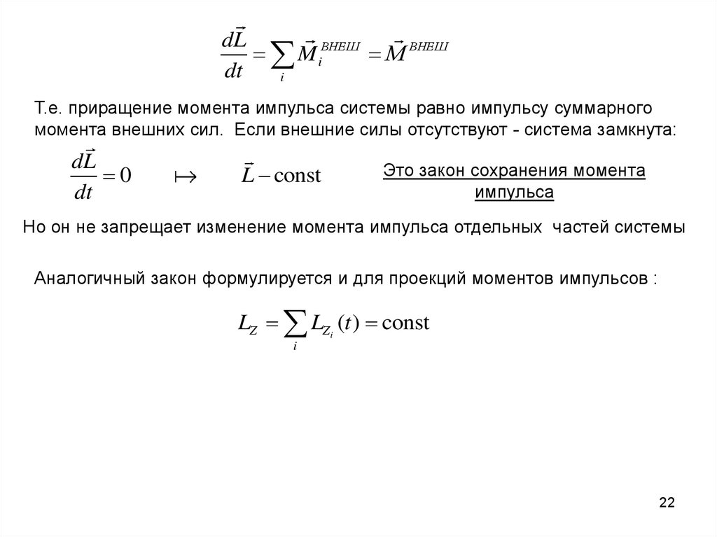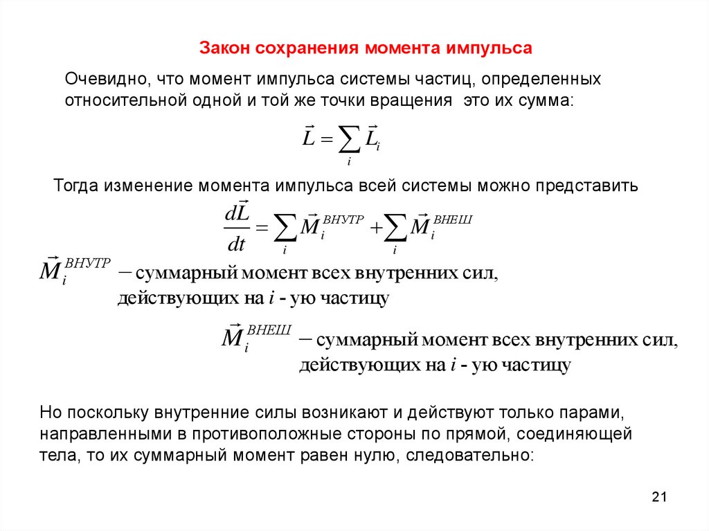 момента внешних сил. Если внешние силы отсутствуют - система замкнута: