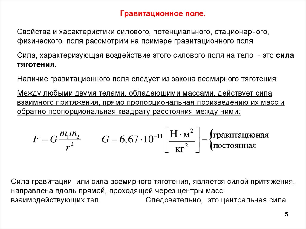 Гравитационное поле.Свойства и характеристики силового, потенциального, стационарного,
