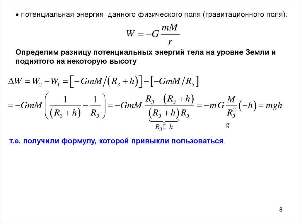 Изменение положения тела под действием поля приводит к изменениюпотенциальной энергии. Поле совершает работу - энергия тела уменьшается: