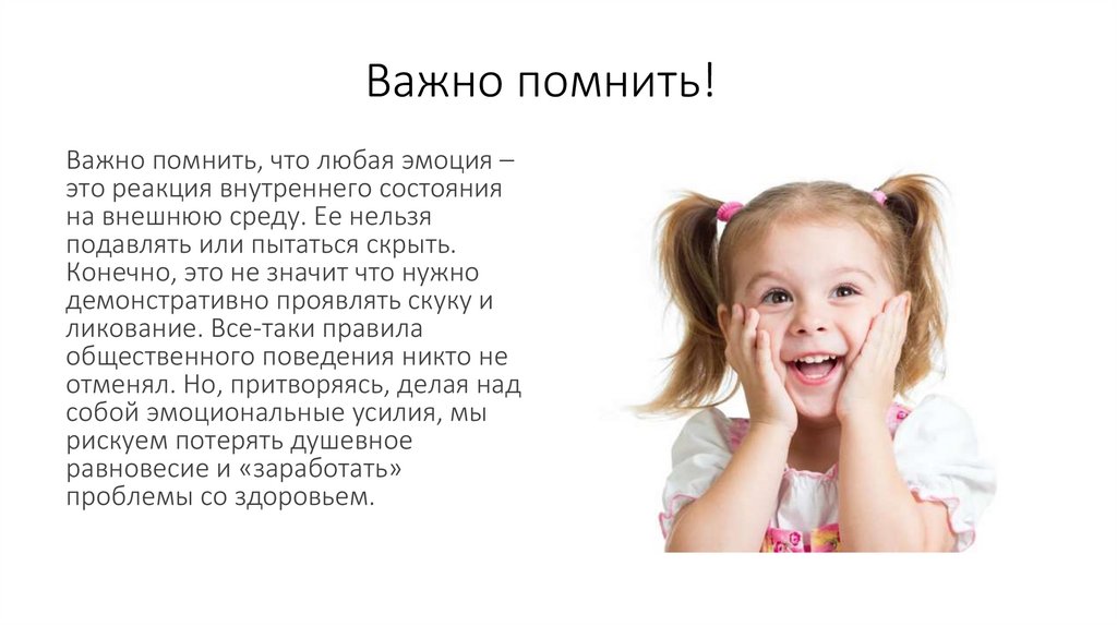 Важно помнить!Важно помнить, что любая эмоция –