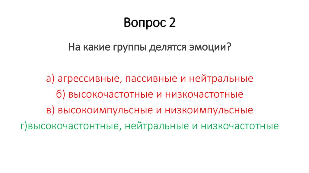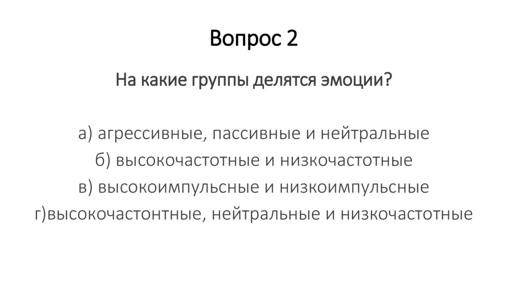 Вопрос 2На какие группы делятся эмоции?