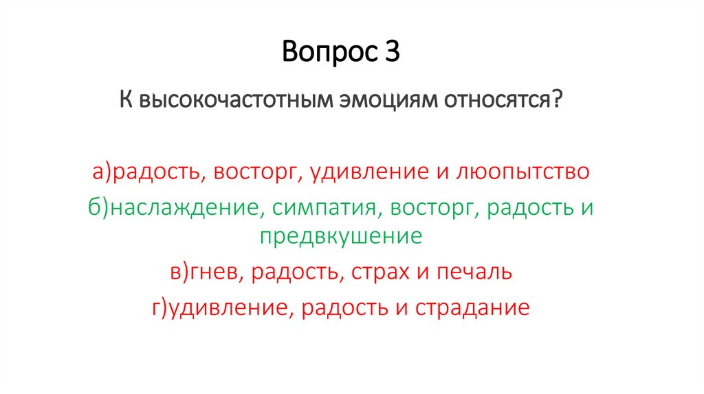 Вопрос 3К высокочастотным эмоциям относятся?