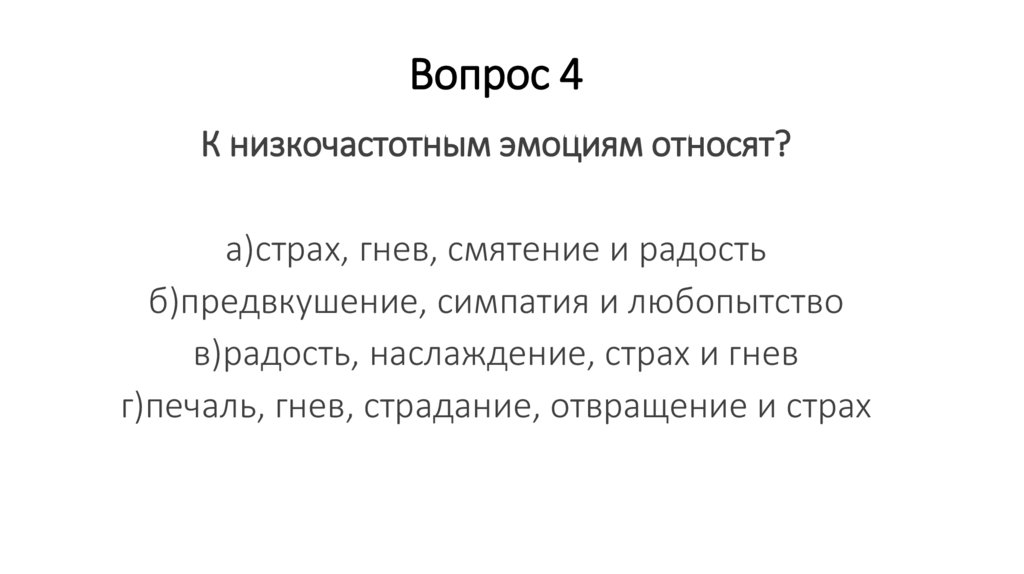 Вопрос 4К низкочастотным эмоциям относят?