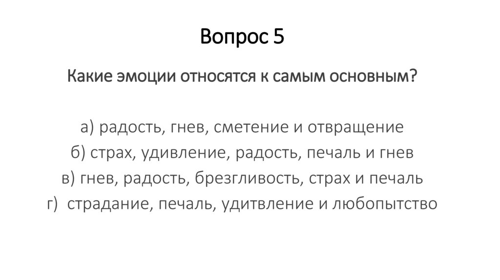 Вопрос 5Какие эмоции относятся к самым основным?