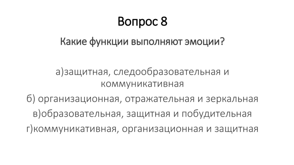 Вопрос 8Какие функции выполняют эмоции?