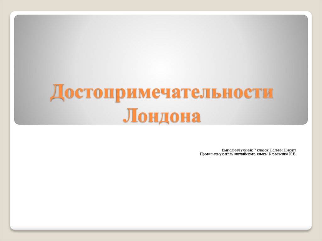 Проверила учитель английского языка: Климченко К.Е.