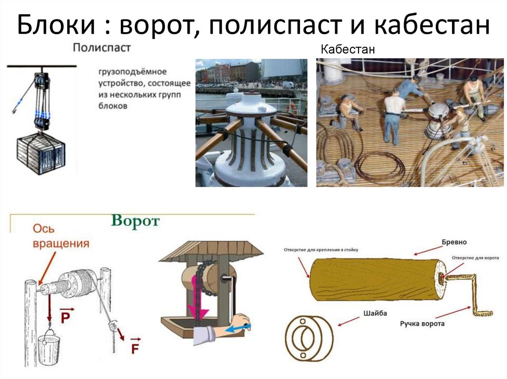 окружности и перекинутого через него каната или другой гибкой тяги.