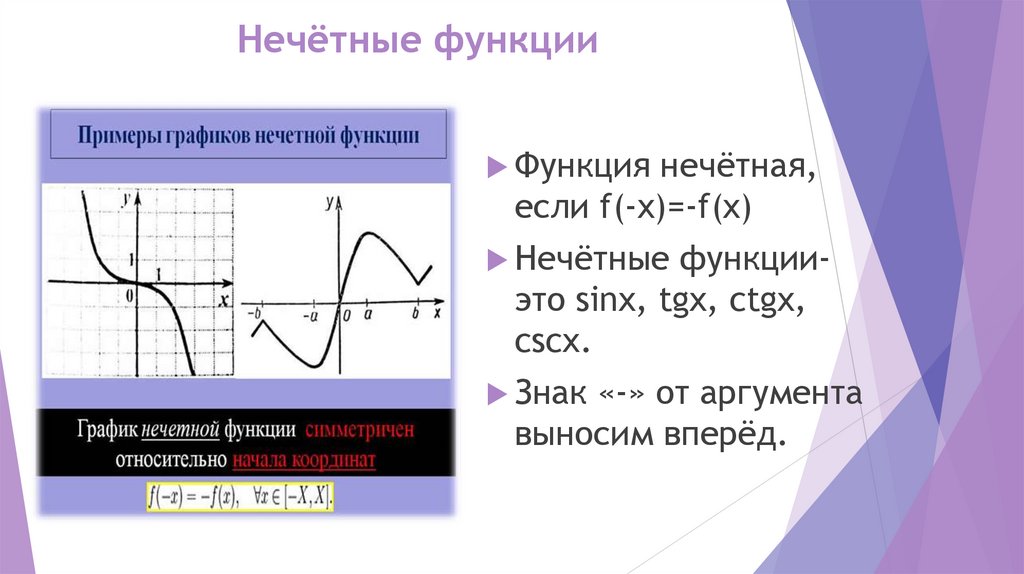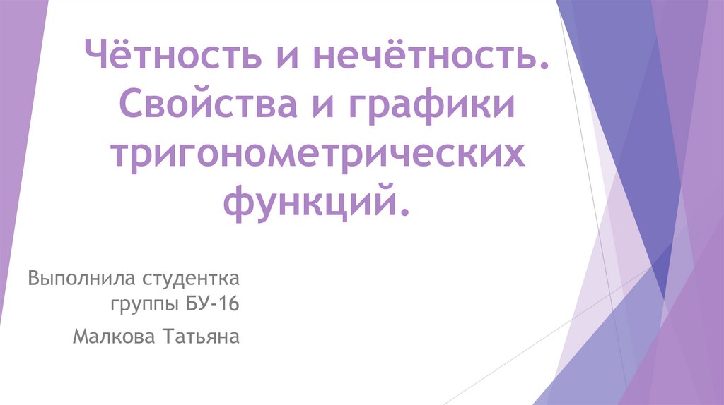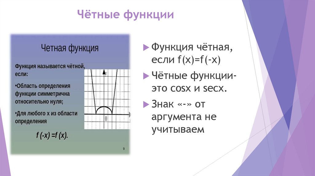 Чётность и нечётность. Свойства и графики тригонометрических функций