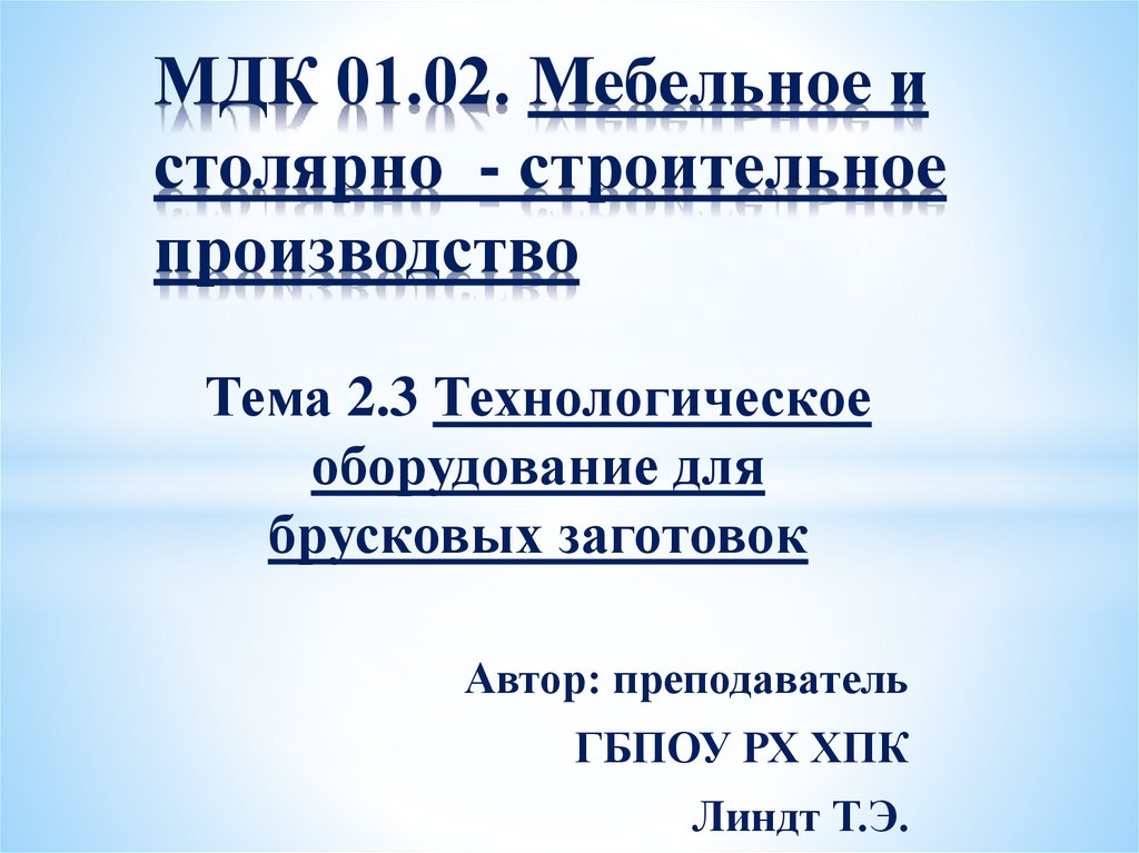 МДК 01.02. Мебельное истолярно - строительное