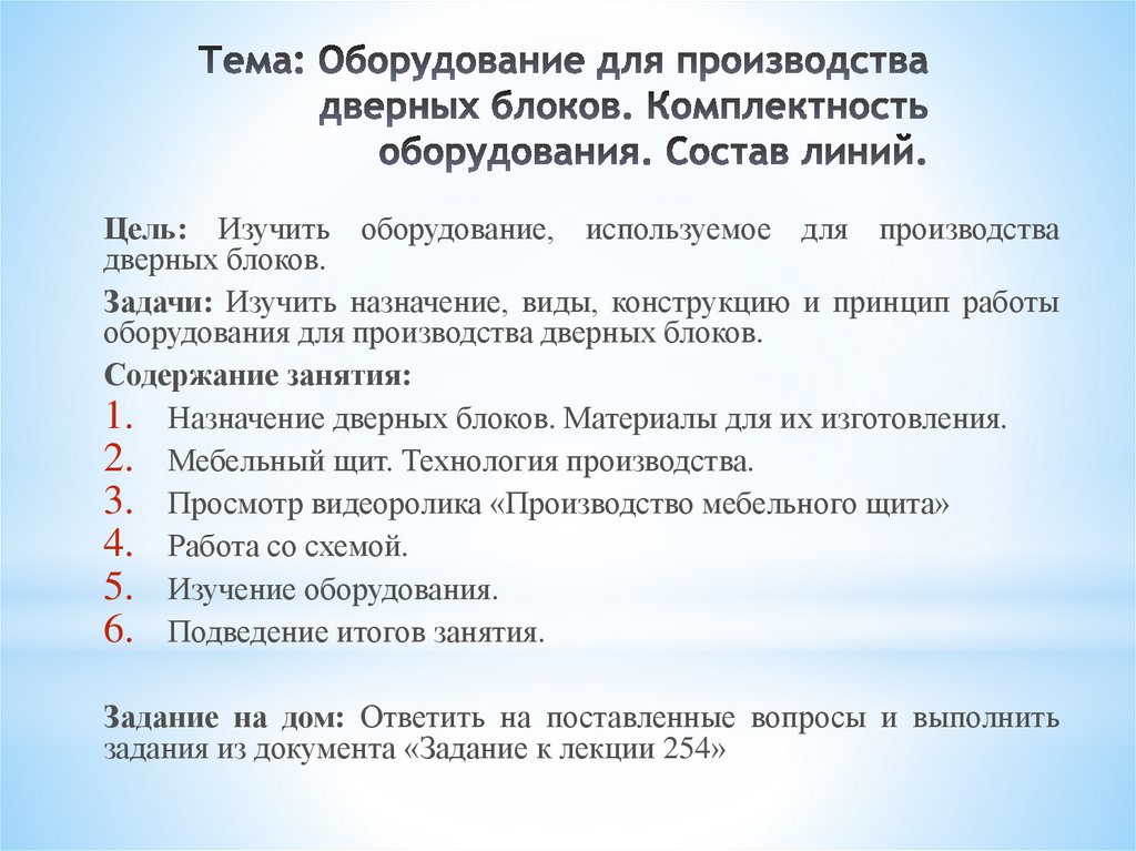 Цель: Изучить оборудование, используемое для производствадверных блоков.