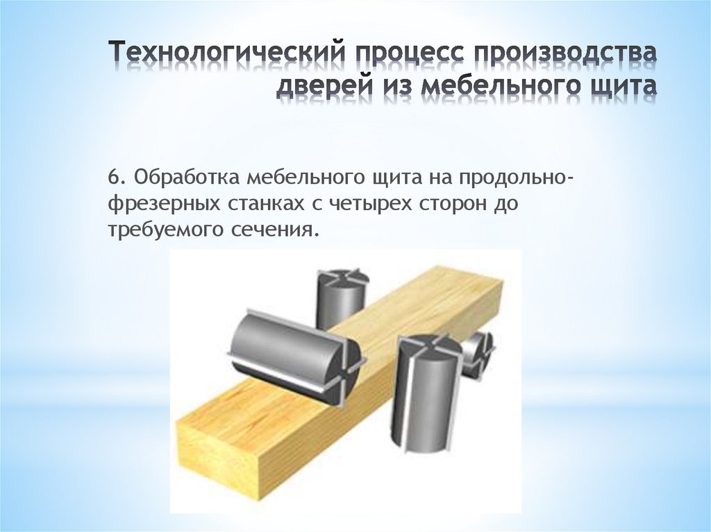 6. Обработка мебельного щита на продольнофрезерных станках с четырех сторон дотребуемого сечения.