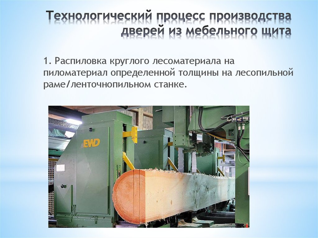 1. Распиловка круглого лесоматериала напиломатериал определенной толщины на лесопильной