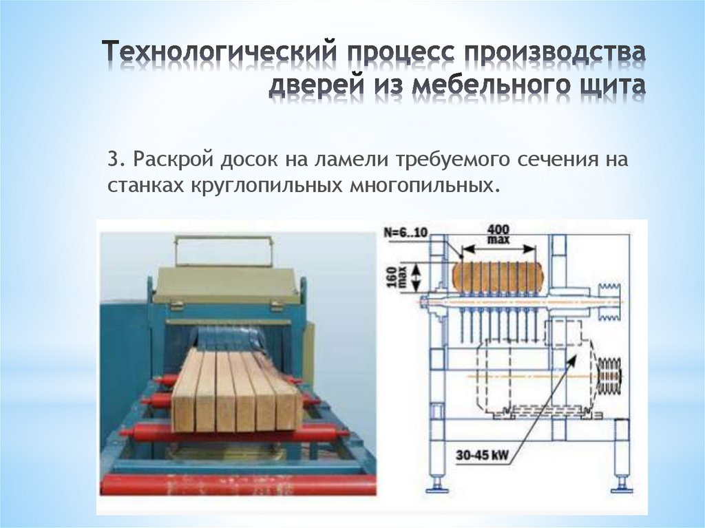 3. Раскрой досок на ламели требуемого сечения настанках круглопильных многопильных.