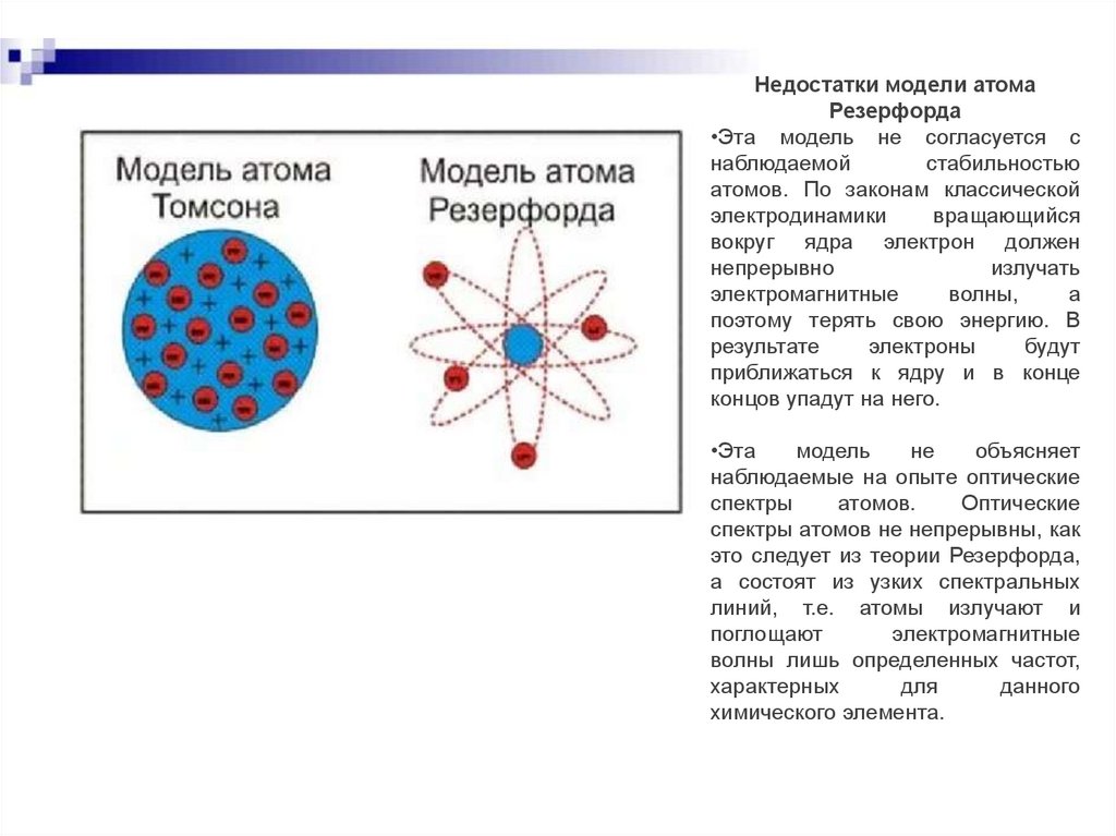 Недостатки модели атомаРезерфорда